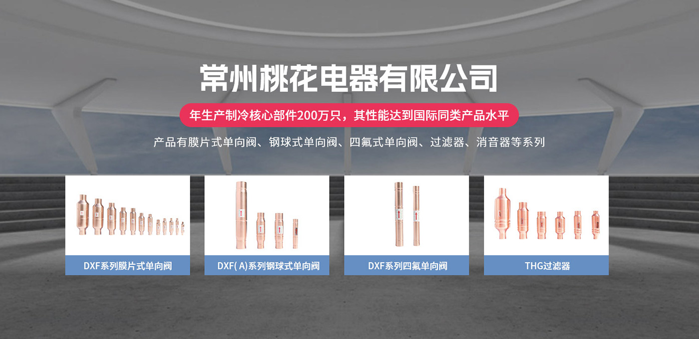常州桃花電器有限公司地處中國長江“金三角”之稱的上海至南京高速公路、城際高鐵、常州高新經(jīng)濟(jì)技術(shù)開發(fā)區(qū)路段,交通便利、技術(shù)力量十分雄厚。它是集研究、開發(fā)設(shè)計、制造和經(jīng)營制冷核心部件的企業(yè),主要生產(chǎn)中央空調(diào)上使用的制冷部件。產(chǎn)品有膜片式單向閥、鋼球式單向閥、四氟式單向閥、過濾器、消音器等系列。年生產(chǎn)制冷核心部件200萬只,其性能達(dá)到國際同類產(chǎn)品水平。 企業(yè)擁有先進(jìn)的科學(xué)技術(shù)、國際先進(jìn)的生產(chǎn)加工設(shè)備和精密的檢測儀器,并已通過ISO9001質(zhì)量體系及CE認(rèn)證,公司歷史悠久,2000年起,經(jīng)過長期積累、沉淀,經(jīng)驗豐富,從而保證了產(chǎn)品的高質(zhì)量、高性能、高耐用性。企業(yè)產(chǎn)品在國內(nèi)外市場具有較高的知名度,深受眾多中外品牌制冷客商的好評。主要客戶有約克、麥克維爾、美的、開利、特靈、頓漢布什、清華同方、天加等.并出口北美、歐洲、東南亞等地區(qū)。 高品質(zhì)產(chǎn)品是企業(yè)的保證,周到服務(wù)是合作友誼的承諾,企業(yè)本著“求